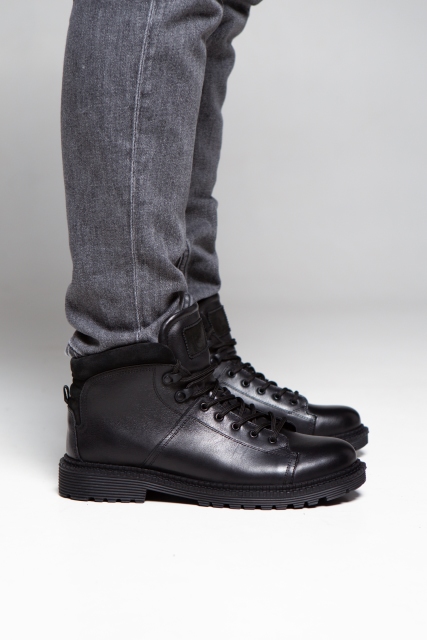 Ботинки мужские из натуральной кожи.Шнуровка впереди и молния с внутренней стороны обеспечивают оптимальную посадку по ноге и удобство для надевания и снятия обуви. Ботинки в стиле кэжуал не выходят из моды и сочетаются с любым гардеробом, являются идеальным вариантом для прогулок в осеннее и зимнее время. Ботинки изготовлены с подкладкой шерсть, для оптимального тепла в холодное время года.