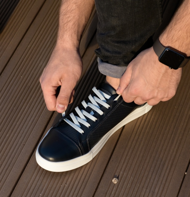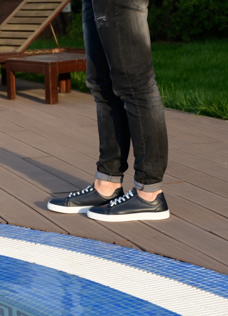 Для тех, кто любит черный цвет и даже летом не может обойтись без него, созданы кеды черного цвета из натуральной кожи с перфорацией. За счет отверстий по всему верху кед ногам будет комфортно, не жарко, а белая подошва из легкого материала ПУ и шнурок резинка придадут легкости шагу и простоты надевания.