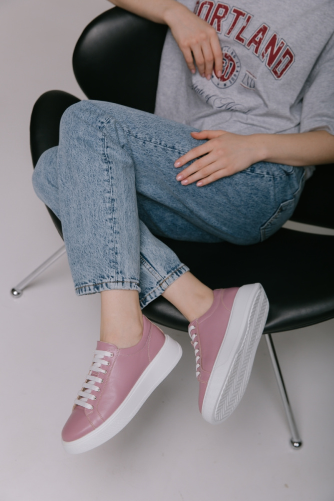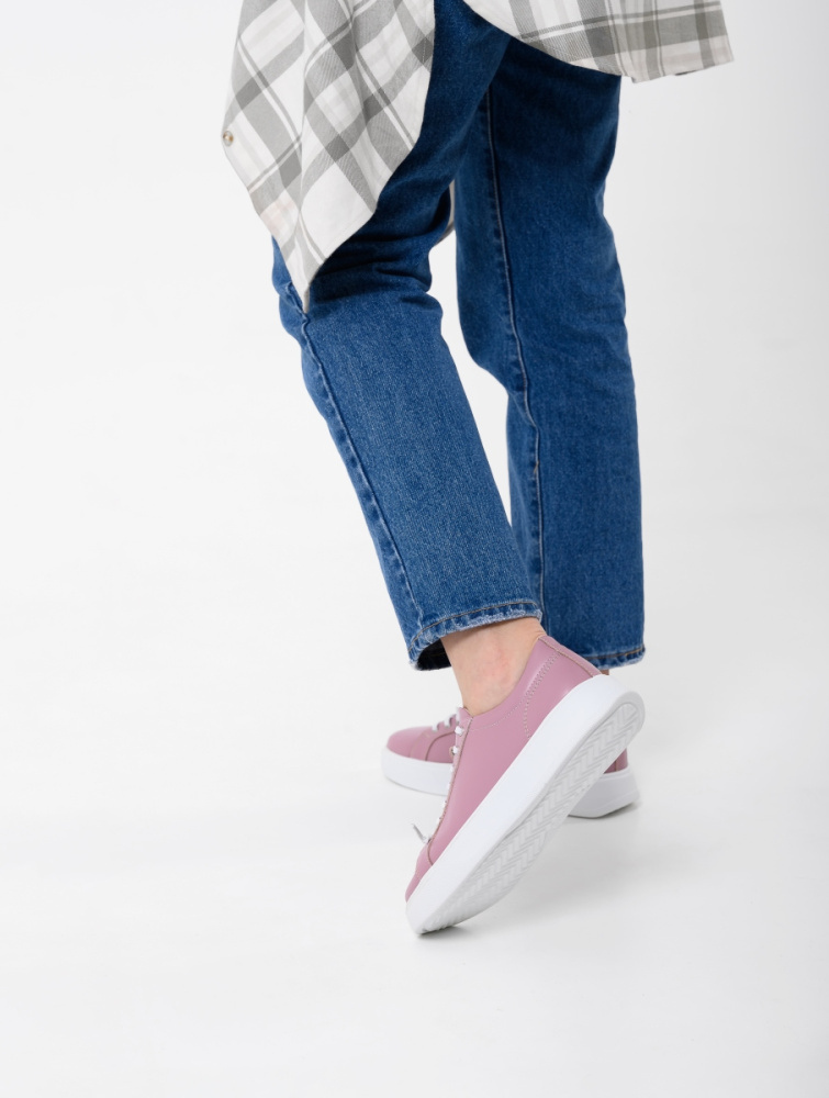 Самой популярной обувью для весенне-летнего сезона являются кеды. Они идеально подходят к разным образам, легко сочетаются с любыми базовыми вещами, абсолютно неподвластны времени, а пенковый нежно-сиреневый цвет создаст летнее настроение. Дизайнеры сделали ставку на универсальность и выполнили модель в максимально лаконичном  дизайне без ярких акцентов и дополнительного декора. Для создания модели использовали мягкую  натуральную кожу.  Главная особенность пары —  удобство, анатомическая стелька, которая подстраивается под форму стопы, хорошо амортизирует и делает обувь более комфортной для повседневной носки, надевание через шнурок резинку. Кеды отлично подойдут  для обладательниц с различным подъемом, поскольку  регулируются шнурками.   В комплекте идут два вида шнурков –обычный и резиновый.