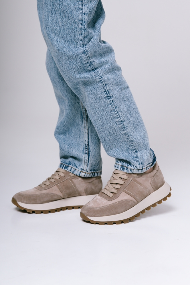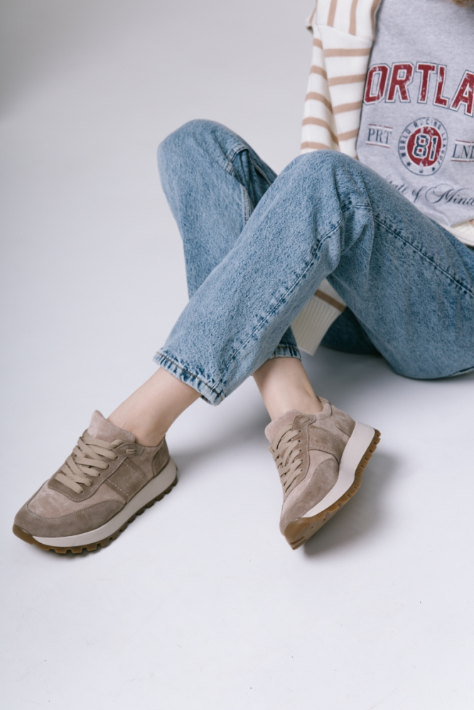 Кроссовки, выполненные из натуральной мягкой, замши  станут идеальным решением для поклонников базовой обуви. Модель на  утолщенной подошве с контрастным основанием. Рифленый рисунок протектора обладает отличными амортизирующими свойствами и устойчивостью. Мягкая анатомическая стелька и  шнуровка гарантируют комфорт и удобство. Модель создана, чтобы гармонично дополнить актуальные ежедневные образы.