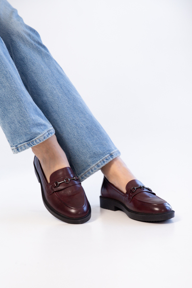 Классические Лоферы Odri с декоративной металлической фурнитурой актуальная  модель в женском гардеробе, которая станет украшением деловых и повседневных образов. В процессе производства модели использовалась натуральная лицевая кожа и подкладка из натуральной кожи. Подошва из облегченного технологичного материала обеспечит комфорт и необходимую амортизацию при долгих прогулок.