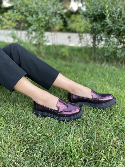 Классические пенни-лоферы  изготовлены из натуральной  кожи неординарного фиолетово-бордового цвета  обладающего переливами, которые будут акцентом образа. Подкладка из мягкой натуральной кожи, удобная колодка и подошва из антискользящего технологичного материала обеспечит комфорт  при долгих прогулках.