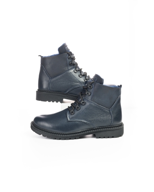 Ботинки изготовлены из мягкой зернистой натуральной кожи, в процессе производства которая проходит обработку восками для большей влагостойкости, отличается хорошей устойчивостью к грязи и прочим внешним воздействиям. Кроме того, лучше подходит для осени и зимы. Подошва из материала ТЭП  защитит от холода в осенне-зимний сезон.Ботинки имеют боковую молнию и шнуровку, удобны для надевания и  снятия. По высоте, ботинки прикрывают щиколотку, голенище ботинка изготовлено из меховой овчины для комфортного прилегания к коже и удержания тепла.В нижней части ботинка утеплитель-шерсть.