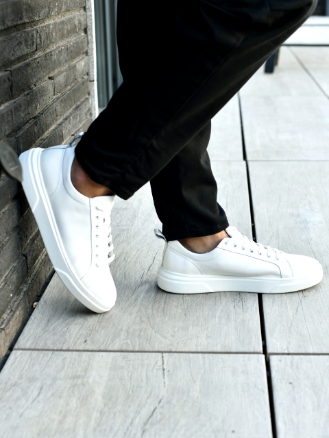 Стильные мужские кеды из натуральной кожи  белого цвета. Внутри - кожаная подкладка. Кеды белого цвета являются универсальной моделью. Носить их можно с чем угодно – шортами, брюками, костюмами, спортивной одеждой.