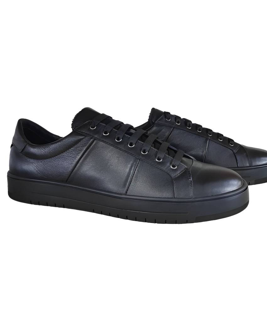Стильные мужские кеды из натуральной кожи в черном цвете. Модель на черной  подошве из термоэластопласта (ТЭП), который представляет собой обувную подошву из синтетических полимеров, лишенную недостатков резины. Термоэластопласты обеспечивают хорошее сцепление изделия с различными поверхностями и высокую сопротивляемость деформациям, а также подходит для использования в холодное время года. Внутри - подкладка из байки, для осени и теплой зимы . Кеды можно сочетать не только с джинсами, но и с брюками зауженными к низу.