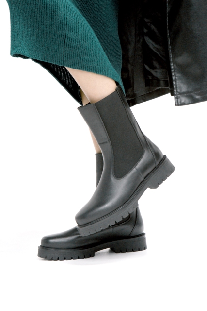 Высокие Челси, в темно-сером цвете из натуральной кожи на подошве с протектором, которая защитит от холода и грязи, будут стильным дополнением модного образа. Резинки с двух сторон обеспечивают оптимальную посадку по ноге и удобство для надевания и снятия.Челси из натуральной кожи до середины икры  с  мягкой подкладкой из байки или шерсти, комфортной стелькой, отлично впишутся в осенние и зимние образы.