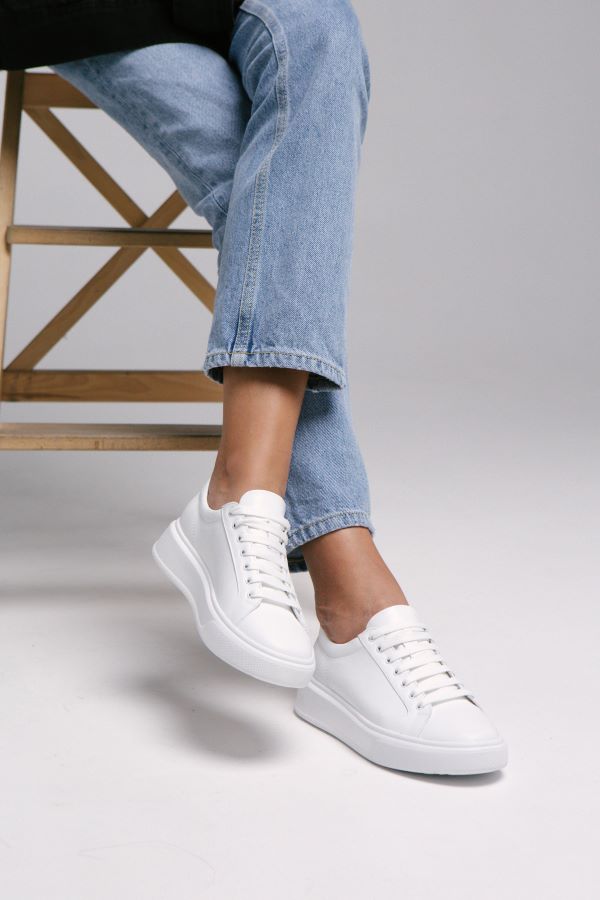 Самой популярной обувью для весенне-осеннего сезона остаются белые кеды. Они идеально подходят к разным образам легко сочетаются с любыми базовыми вещами и абсолютно неподвластны времени. Дизайнеры сделали ставку на универсальность и выполнили модель в максимально лаконичном  дизайне без ярких акцентов и дополнительного декора. Для создания модели использовали мягкую  натуральную белую кожу . Главная особенность пары — анатомическая стелька, которая подстраивается под форму стопы, хорошо амортизирует и делает обувь более комфортной для повседневной носки. Кеды отлично подойдут  для обладательниц разной полноты стопы так как легко регулируются шнурками  В комплекте идут два вида шнурков –обычный и резиновый.