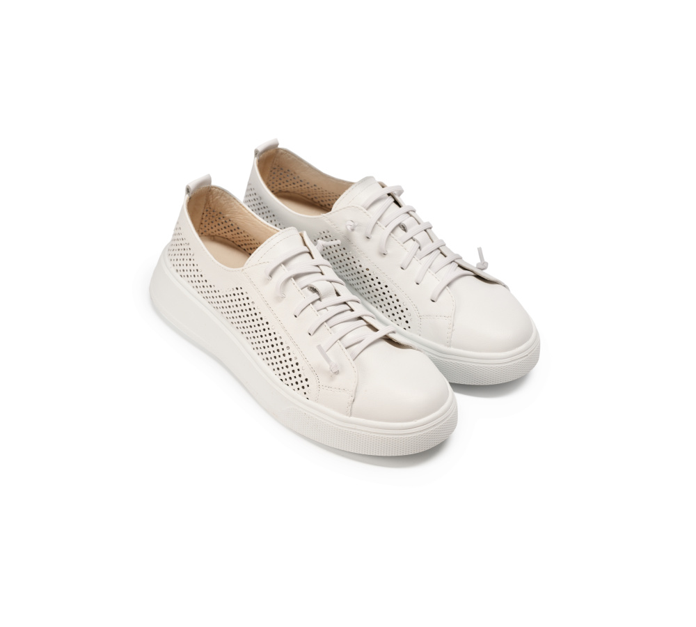 Кеды  с перфорацией прекрасно дополнят  практически каждый образ, учитывая современные тенденции в мире моды. Удобные шнурки-резинка, облегчающие надевание обуви, облегченная подошва из матерала ЭВА, верх из натуральной кожи с перфорацией, придающей дополнительный дышащий эфект натуральной коже и анатомическая стелька из пенообразного мягкого материала, создадут невероятный комфорт  при долгих летних прогулках по городскому ландшафту.