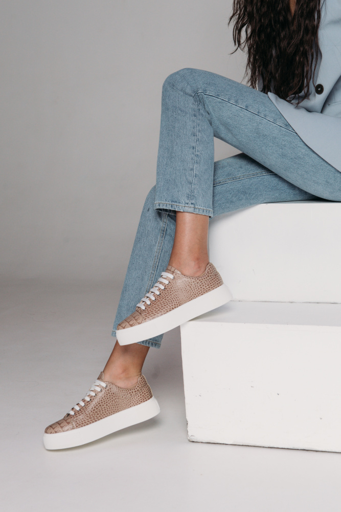 Женские кеды  станут вашими лучшими друзьями при долгих прогулках по городскому ландшафту и не только. Отлично подходящие под практически каждый образ, учитывая современные тенденции в мире моды. Удобные шнурки-резинка и облегченная подошва, верх из натуральной  кожи с тиснением рептилии с анатомической стелькой внутри. Стиль и комфорт - достойный выбор для повседневной носки