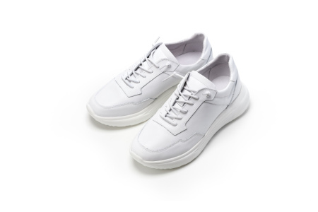 Женские кроссовки  из натуральной кожи в самом актуальном цвете всех сезонов сочетается с различными цветами гардероба. В меру объемная  облегченная подошва с анатомической стелькой внутри. Шнурок-резинка облегчает снятие и одевание кроссовок. Стиль и комфорт - достойный выбор для повседневной носки.