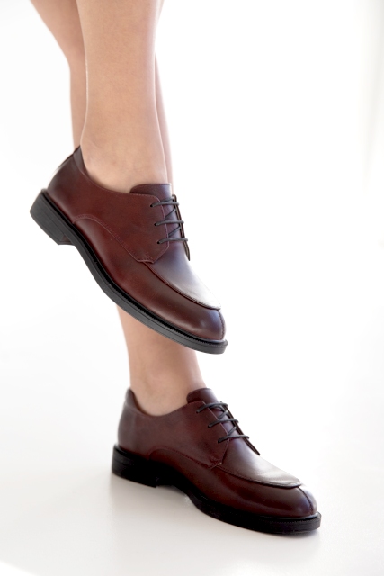 Туфли выполнены из мягкой матовой кожи в цвете бордо. Подошва из облегчённого гибкого материала с небольшим каблуком и комфортной анатомической стелькой.